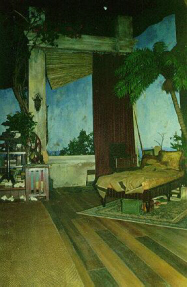 The Daybed had us a bit nervous by the time four different carpenters had worked on it. It didn't look very good and we were sure we would have to rebuild it. Then charge painter Vaughn Patterson and Patrick Mann got their hands on it and turned it into a masterpiece.